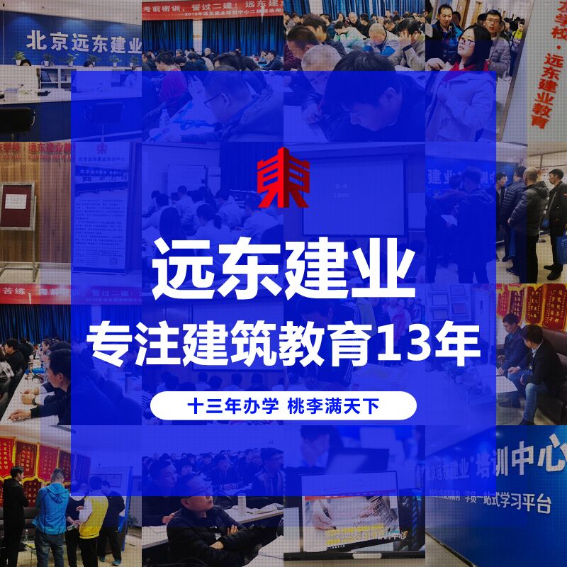 远东建业培训中心,总部位于首都北京,隶属于北京远东建业技术培训有限公司,是中国权威的职业教育机构之一,是全国建设工程类知名培训品牌,拥有“广建”、“远东建业”、“建证培训”三大知名教育培训商标,是经中国人民银行征信中心认定的信用机构,是经国家广电总局批准备案的电子出版物、音像制品销售许可单位,是经民政部、教育部批准备案的正规培训机构,是经住建委批准备案的建筑行业培训机构,远东建业成立十三年来,致力打造“品质、品牌、专业、专注”的金牌培训,坚持“诚实守信,学员至上”的立业原则,秉持“严谨治教,优质服务”的培训宗旨,凭借科学的课程体系、专业的教研团队、强大的师资力量、完善的服务团队及个性化的服务体系,帮助几十万考生顺利通过考试。